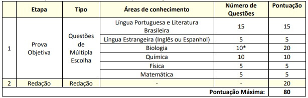 As provas serão constituídas de Redação e Prova Objetiva com questões de múltipla escolha, conforme discriminado no quadro a seguir: