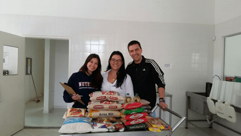 Na ocasião, a nutricionista e supervisora da entidade, Gisely Peron, e a acadêmica de nutrição da UFV em estágio no Banco de Alimentos Aline Rosignoli da Conceição receberam os donativos.