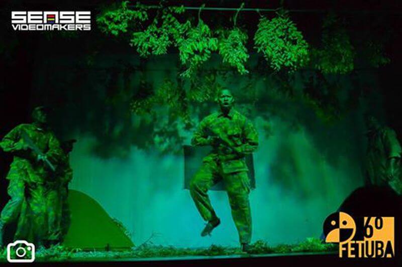 Foto do espetáculo "Filhos da Pátria" do Grupo de Teatro Kulonga, de Luanda, na Angola. Além do grupo africano, companhias de países como Portugal, Venezuela e Argentina chegaram a fazer contato com os organizadores do Fetuba interessandos em participar.