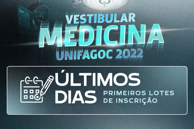 Termina, neste domingo (31), o primeiro lote das taxas de inscrição para o Vestibular de Medicina 2022.1 do UNIFAGOC Neste processo, a seleção será feita por meio de prova presencial, aplicada no dia 05 de dezembro simultaneamente em Ubá e Belo Horizonte e/ou por meio da nota do Enem das edições de 2015 a 2020.