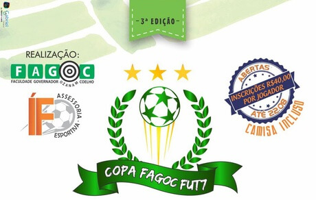 Até o dia 22 (segunda-feira), estão abertas as inscrições para a 3ª Edição da Copa Fagoc FUT7. Os times devem ser compostos por no mínimo 10 integrantes e no máximo 15 e as inscrições são no valor de R$ 40 (por cada participante). Alunos de todos os cursos, professores e colaboradores da Fagoc podem participar.