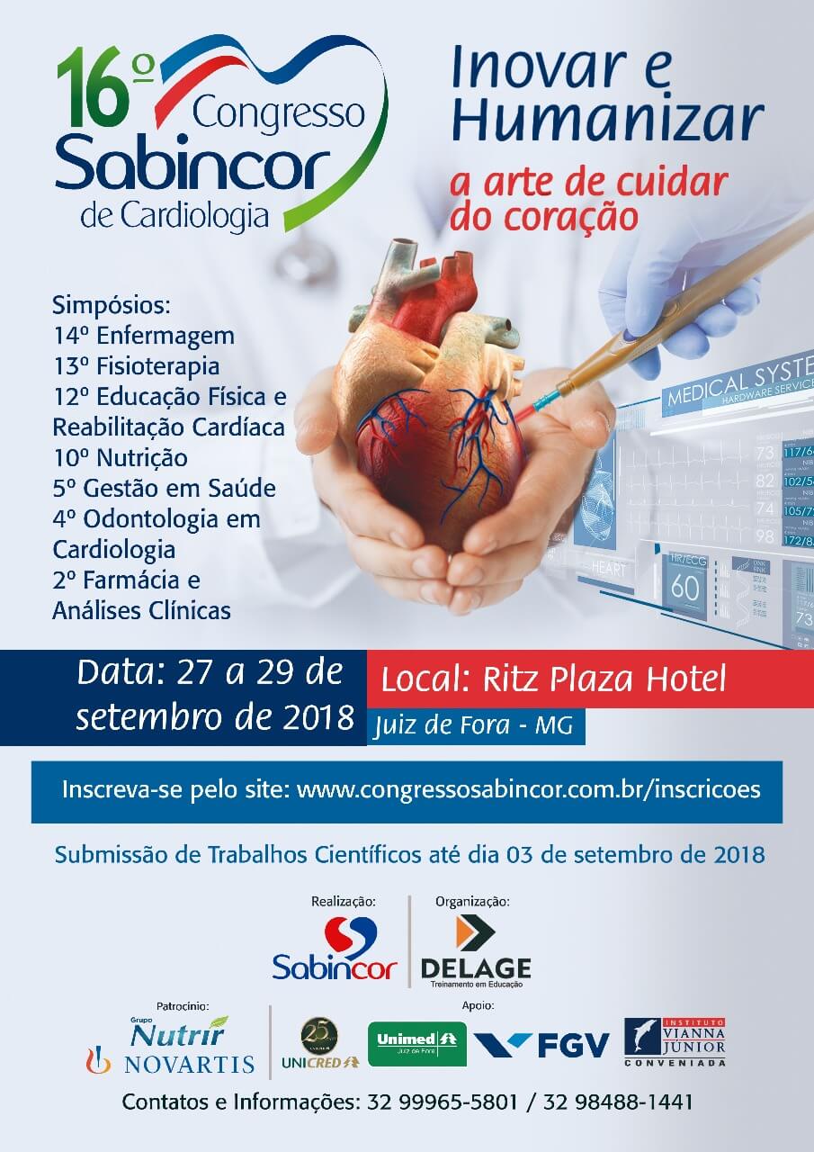Inscrições abertas para 16º Congresso Sambicor de Cardiologia. O evento acontece de 27 a 29 de setembro, no Ritz Plaza Hotel, em Juiz de Fora.