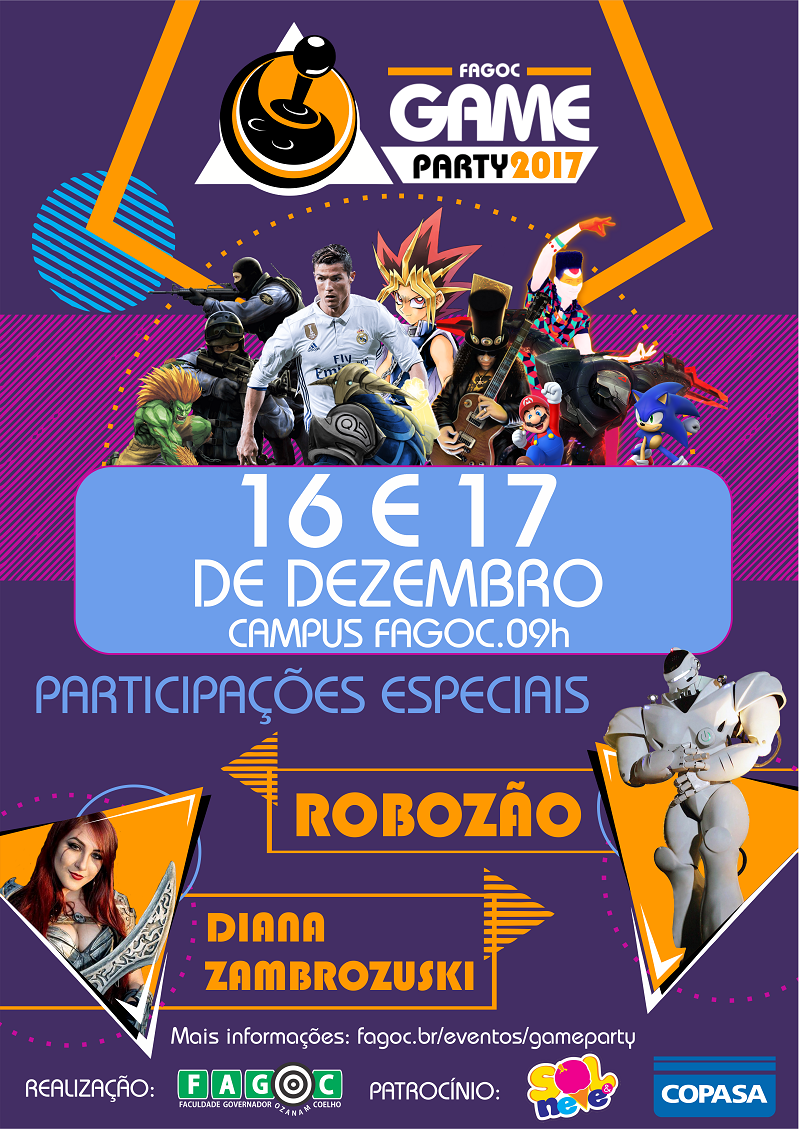 Já é possível se inscrever para o Fagoc Game Party 2017. Neste ano, serão duas modalidades de inscrição: uma gratuita para quem for participar do evento, e outra paga para quem for participar dos campeonatos com premiação.