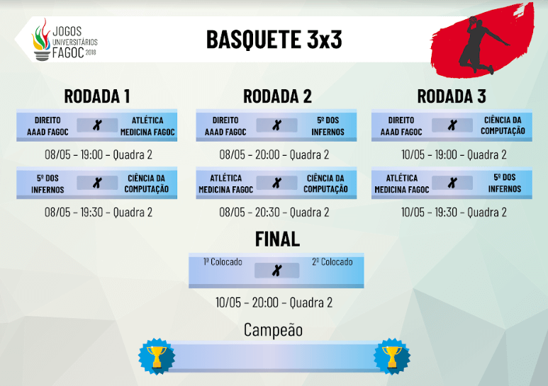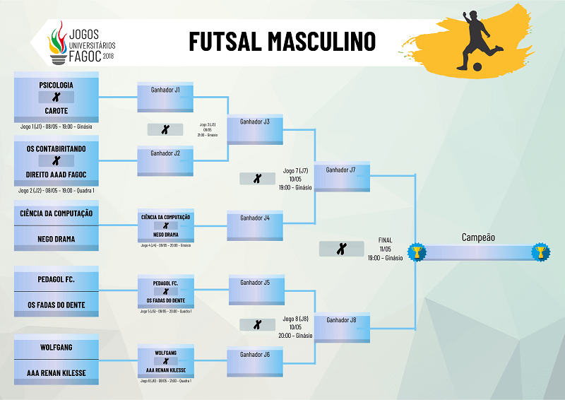 Os Jogos Universitários Fagoc se aproximam e as equipes já foram sorteadas para os confrontos da competição que acontece de 7 a 11 de maio no Sesi.
