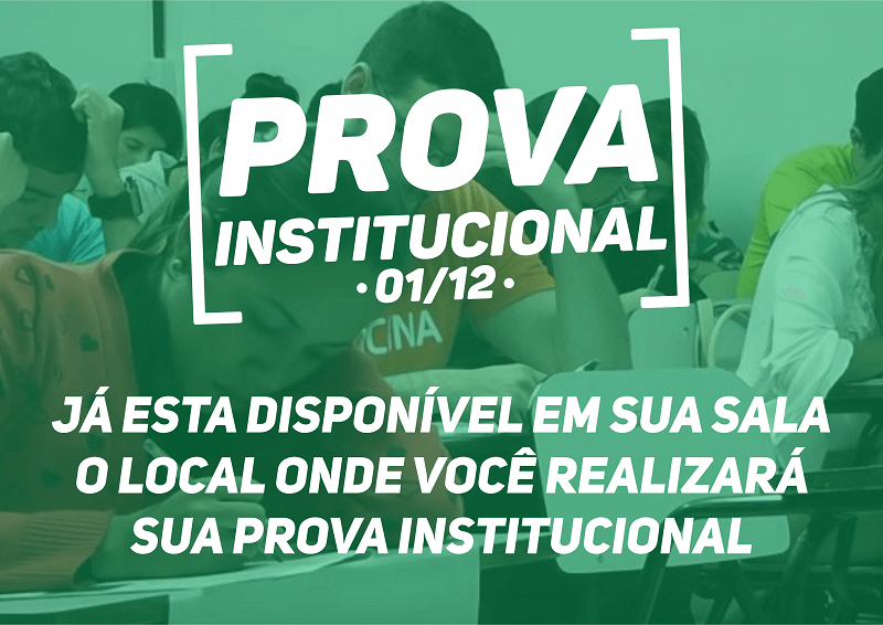 A Prova Institucional acontece na próxima quinta-feira, 01 de dezembro, às 19h30. O teste, no valor de 35 pontos, tem o objetivo de avaliar o plano de ensino, o aprendizado dos estudantes e a qualificação dos docentes. Além disso, o diferencial dessa avaliação é o fato dela ser formulada por professores de outras instituições sobre as disciplinas de maior impacto na formação do aluno no semestre.