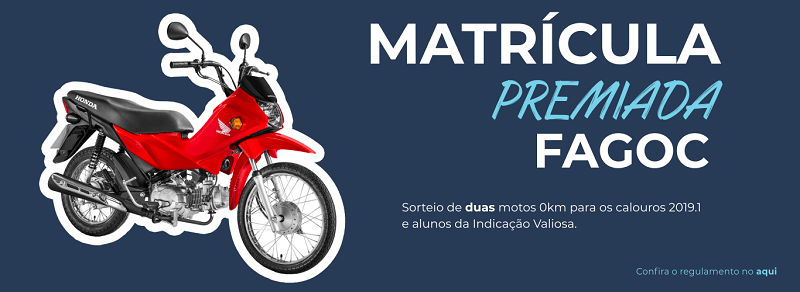 Matrícula premiada: Fagoc sorteia 2 motos para calouros e alunos da indicação valiosa