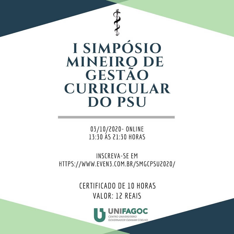 O curso de Medicina do UNIFAGOC promove o I Simpósio Mineiro de Gestão Curricular do Processo Seletivo Unificado de Minas Gerais (PSU), um importante concurso de residência médica que reúne diversas instituições que oferecem o programa no estado. O evento acontecerá de forma online e será transmitido por meio do canal do Youtude TV UNIFAGOC no dia 03 de outubro (sábado), das 13h30 às 21h30.
