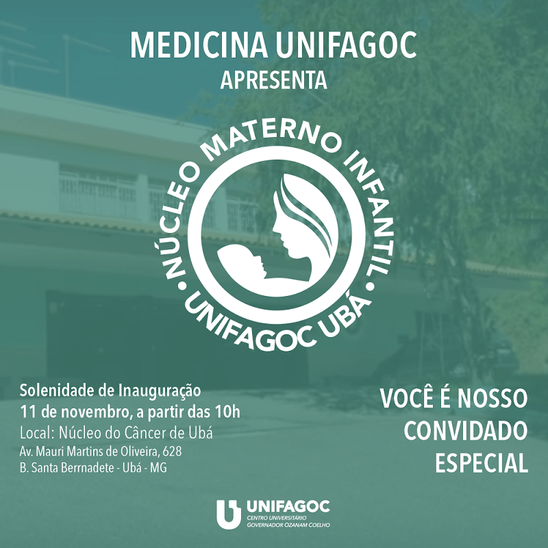 O curso de Medicina do UNIFAGOC promove a inauguração do Núcleo Materno Infantil, na próxima segunda-feira (11). A solenidade é aberta à comunidade e acontece a partir das 10h, na sede do Núcleo, localizada na Avenida Mauri Martins de Oliveira, bairro Santa Bernadete em Ubá.