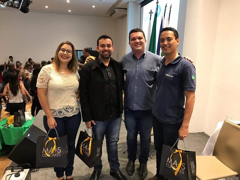 Na foto a convidada e professora do curso de Administração da Fagoc Yara Singulano, o palestrante convidado Ricardo Nascimento, ao lado do professor da faculdade e um dos organizadores do projeto Leonardo Parma e o convidado Elias Aquino.