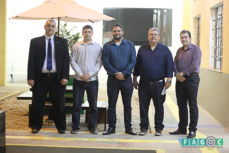Na foto, o delegado da Receita Federal de Juiz de Fora, Leonardo Couto Sobral, o chefe da Agência da Receita Federal de Ubá, Ciro Reis Rodrigues, o superintendente acadêmico da Fagoc, Marcelo Daibert, o coordenador de Ciências Contábeis da Fagoc, Wilderson Cardoso, e o delegado do Conselho Regional de Contabilidade em Ubá, Wellington Peron.