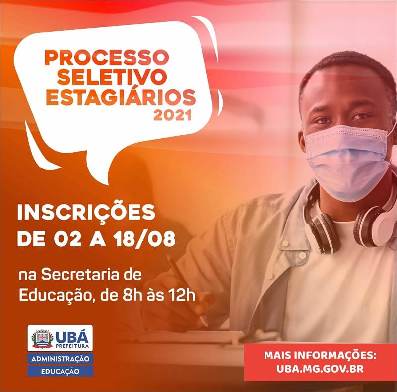 A Prefeitura Municipal de Ubá deu início às inscrições para o Processo Seletivo Simplificado para Concessão de Estágio a Estudantes. As vagas são destinadas a alunos do ensino superior, de educação profissional e de ensino médio profissionalizante. O edital pode ser consultado no site da prefeitura.