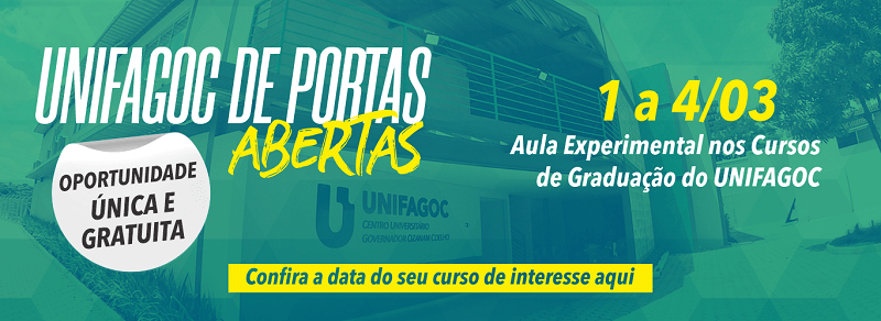 O UNIFAGOC abre as portas para uma aula experimental gratuita em qualquer curso de graduação da instituição, exceto Medicina. A oportunidade é aberta ao público e acontecerá entre os dias 1º, 02, 03 e 04 de março.