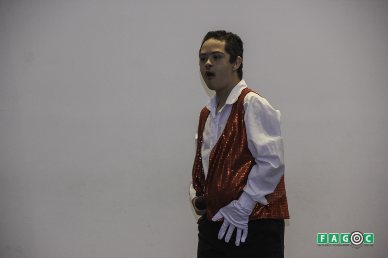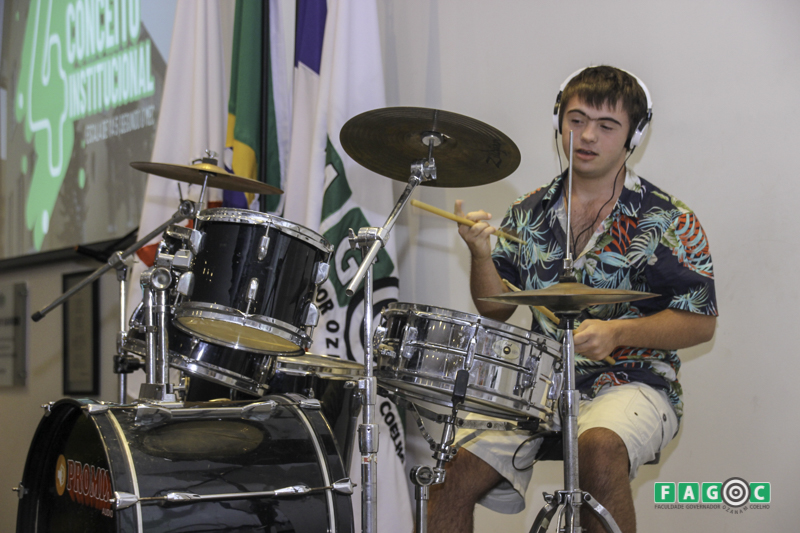 O adolescente filho da palestrante Patrícia, Luiz Eduardo Pogianelo Mendes, encerrou a noite como uma apresentação de bateria e ainda cantou uma canção.