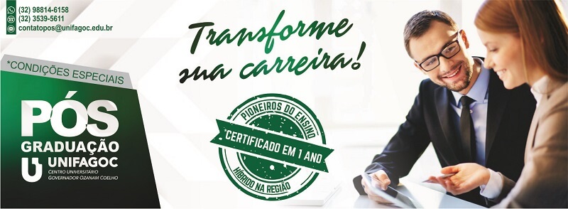 Para os inscritos em até o dia 17 de fevereiro (segunda-feira), o Núcleo de Pós-Graduação UNIFAGOC oferece uma condição especial de 80% de desconto na matrícula. Os interessados podem entrar em contato pelo telefone (32)3539-5611, pelo whatsapp (32) 98814-6158 ou pelo email contatopos@unifagoc.edu.br.
