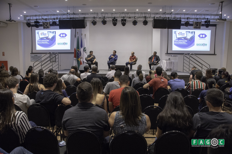 A primeira iniciativa do projeto foi um painel com o título “Implantação do e-Social: desafios e dificuldades”, realizado no dia 07 de novembro (quarta-feira), no Auditório Ary Barroso.
