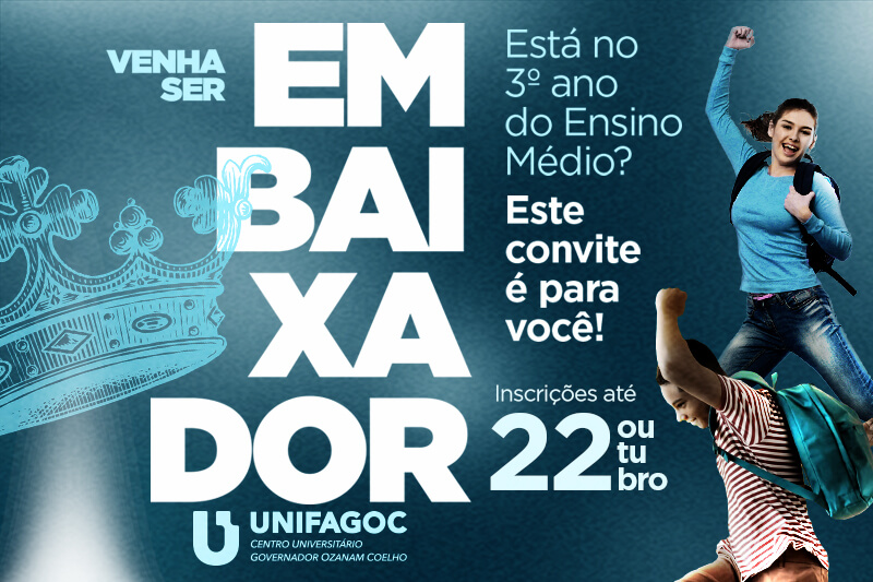 O resultado da seleção será divulgado na cerimônia de nomeação dos Embaixadores UNIFAGOC, que será realizada no dia 30 de outubro. O REGULAMENTO pode ser conferido neste LINK.