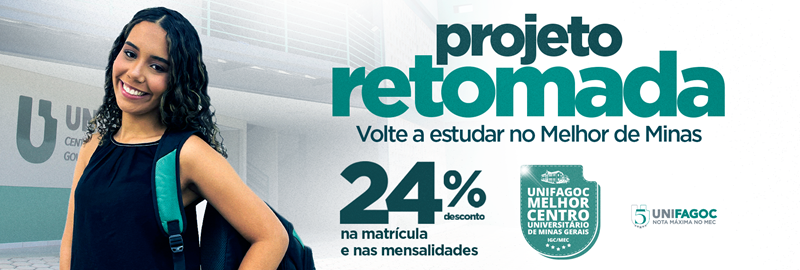 Os alunos que iniciaram a graduação no UNIFAGOC e precisaram interromper os estudos, agora têm uma nova oportunidade para continuar construindo um futuro de excelência no Melhor Centro Universitário de Minas Gerais. O Projeto Retomada oferece descontos de até 24% na matrícula e nas mensalidades até o fim da graduação em cursos selecionados.