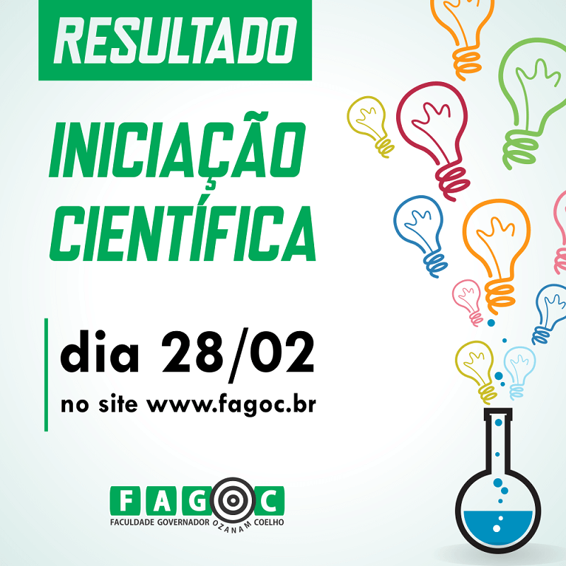 O resultado dos projetos aprovados na Iniciação Científica 2018 da Fagoc, previsto para ser divulgado nesta sexta-feira (23), foi prorrogado. Segundo a comissão organizadora, o resultado será anunciado no dia 28 de fevereiro (quarta-feira), no site da Fagoc.
