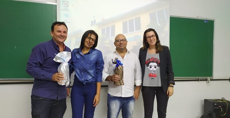 Da esquerda para a direita José Carlos Reis Pereira, a aluna de Psicologia e uma das organizadoras da iniciativa Maria Inês Aparecida Leite, Maximiliano Camilo Batista e a professora Francesca Stephan.