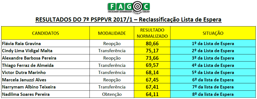 Destacamos que não houve alteração na classificação dos candidatos aprovados nas 06 vagas ofertadas no presente processo seletivo, sendo 04 para alunos de Transferência, 01 para Reopção e 01 para Obtenção de novo título.