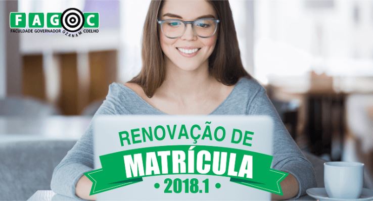 O processo de Renovação de Matrícula para o primeiro semestre de 2018 está disponível até 8 de dezembro. O aluno deve acessar o Siga para autorizar a emissão do boleto referente à renovação.