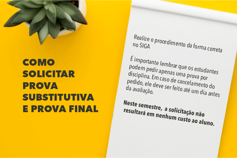 Neste semestre, os pedidos de Prova Substitutiva e Prova Final não geram custos ao estudante.