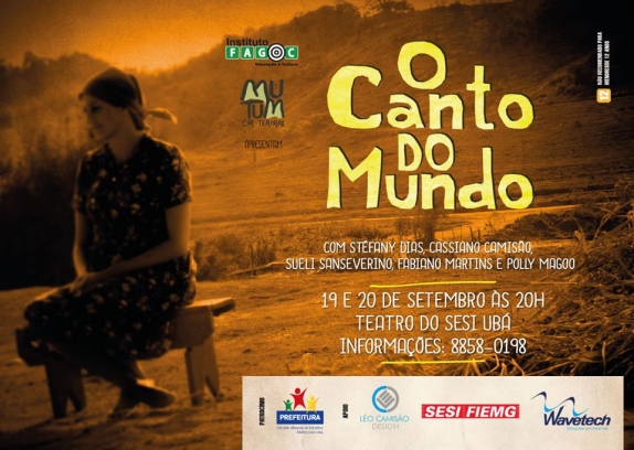 Neste fim de semana, a Companhia Teatral Mutum estreia um novo espetáculo: "O Canto do Mundo". Em curta temporada, as apresentações acontecem sábado e domingo (19 e 20), no Teatro do Sesi Ubá, a partir das 20h. O valor do ingresso é R$10,00.Com texto e música de Fabiano Martins, a trama conta a história de uma família que vive em um local quase esquecido no interior de Minas Gerais. De acordo com o diretor e um dos atores, Cassiano Camisão, a proposta é "levar o espectador a vivenciar o dia-a-dia das personagens, mostrando a simplicidade e a riqueza dessa gente que se esconde entre as montanhas da nossa terra".