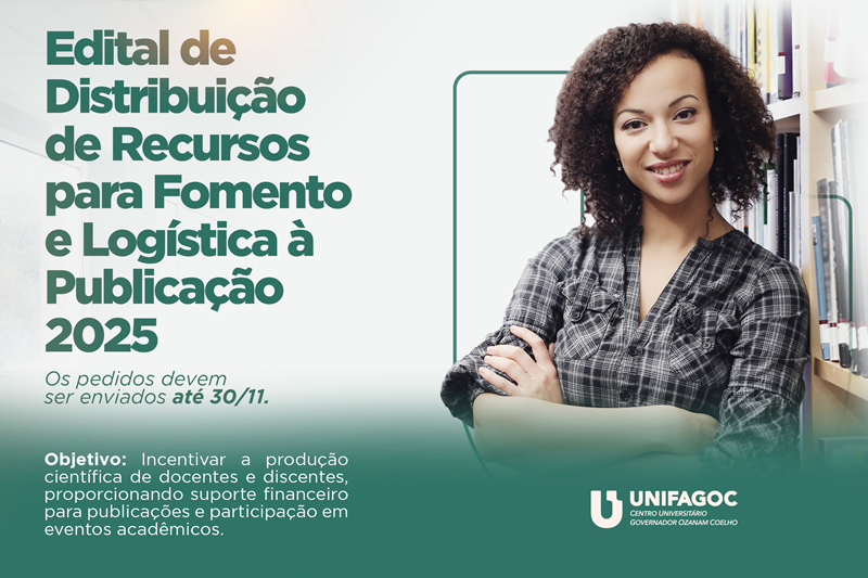 O Centro Universitário UNIFAGOC, por meio da Pró-Reitoria de Ensino e Desenvolvimento Institucional, torna público o Edital de Distribuição de Recursos para Fomento e Logística à Publicação 2025.