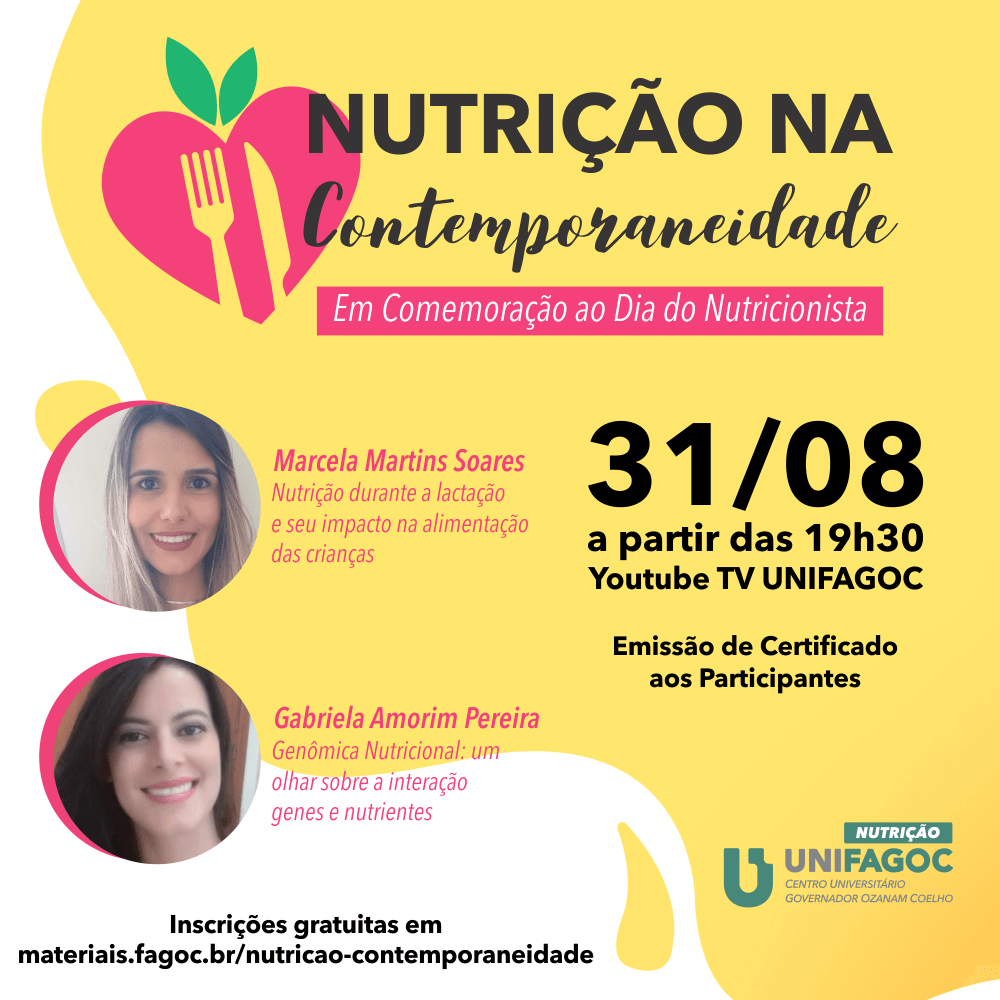 Em comemoração ao Dia do Nutricionista, o curso de Nutrição do UNIFAGOC promove uma programação especial, na segunda-feira (31), a partir das 19h30. O evento será totalmente online, direcionado aos alunos da graduação e ao público em geral.