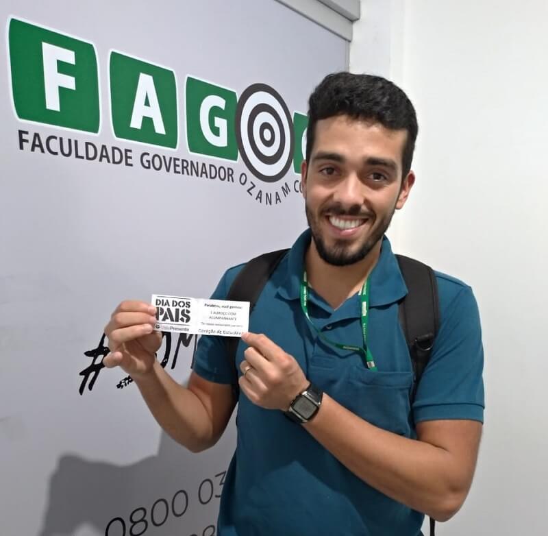 Professor do curso de Educação Física Rômulo José Mota Júnior ganhador do almoço no restaurante Coração de Estudante