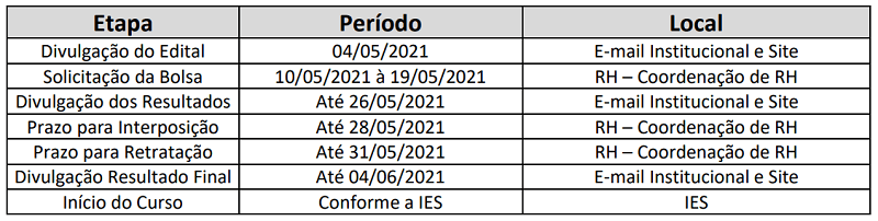 O professor contemplado com a bolsa deverá iniciar a pós-graduação no prazo máximo de até seis meses.