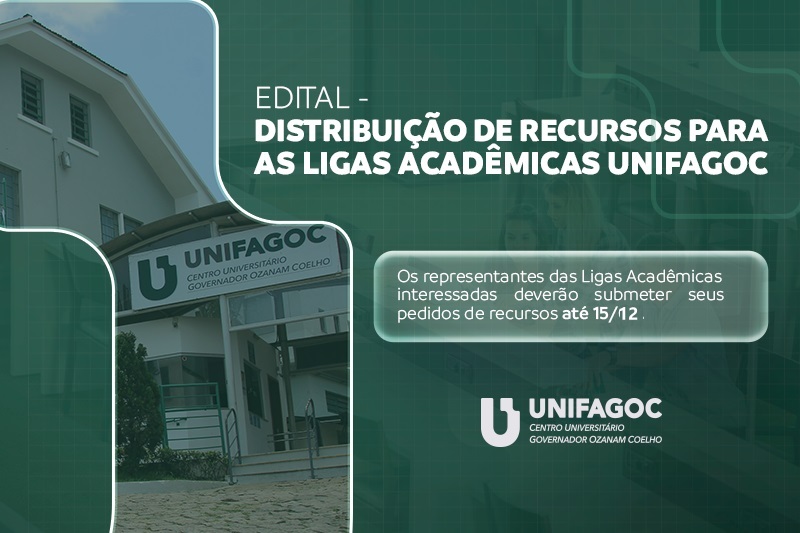 O edital tem como objetivo distribuir recursos financeiros para as Ligas Acadêmicas do UNIFAGOC, visando promover e apoiar aprofundamento teórico-prático das atividades aprendidas em sala de aula entre os estudantes da Instituição.