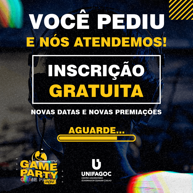 UNIFAGOC divulga novas datas da versão online do Game Party, que passa a ter inscrições gratuitas