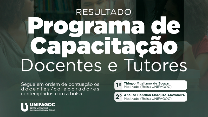 O Centro Universitário UNIFAGOC divulga o resultado da concessão de bolsas de mestrado e doutorado destinadas aos professores da Instituição.