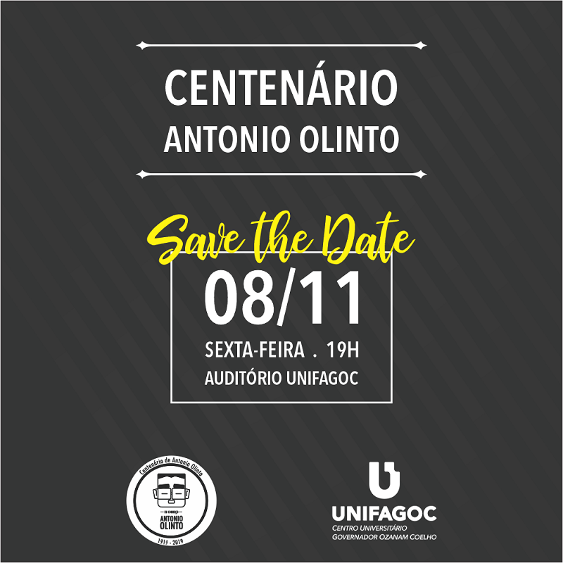 A comemoração do centenário de nascimento de Antonio Olinto também faz parte das ações que celebram os 20 anos do Centro Universitário UNIFAGOC. O autor prestigiou várias atividades da instituição de ensino, cuja biblioteca tem o seu nome.