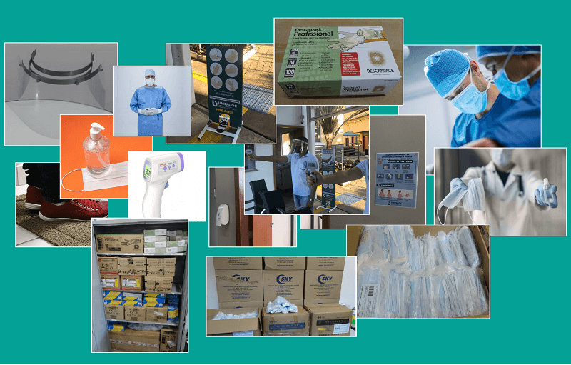 "Compramos máscaras cirúrgicas, máscaras n95, face shield, que foi fabricado pelo nosso setor de Tecnologia da Informação, óculos de proteção, toucas, luvas e capotes impermeáveis. Todos esses EPIs estão sendo fornecidos exclusivamente pelo UNIFAGOC, de forma a precaver qualquer tipo de contágio dos nossos alunos e preceptores", declara Leonardo.