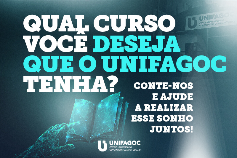Qual curso você deseja que o UNIFAGOC tenha? A fim de identificar novos potenciais cursos, o centro universitário ubaense lança uma pesquisa online. No questionário, podem ser sugeridas graduações e pós-graduações nas modalidades presencial, ensino a distância ou híbrida (aulas teóricas on-line ao vivo e práticas presenciais).