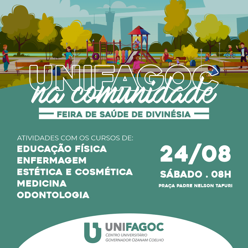 O projeto UniFagoc na Comunidade marcará presença na Feira de Saúde de Divinésia neste sábado (24). Na oportunidade, alunos e professores dos cursos de Educação Física, Enfermagem, Estética e Cosmética, Medicina e Odontologia do Centro Universitário UniFagoc prestarão serviços gratuitos para os participantes. O evento acontece a partir das 08h, na Praça Padre Nelson Tafuri.