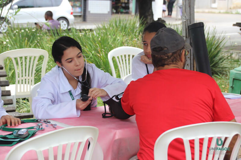 Os estudantes de Enfermagem e Medicina realizaram atividades como aferição de pressão, glicemia capilar, antropometria e avaliação de risco cardiovascular.