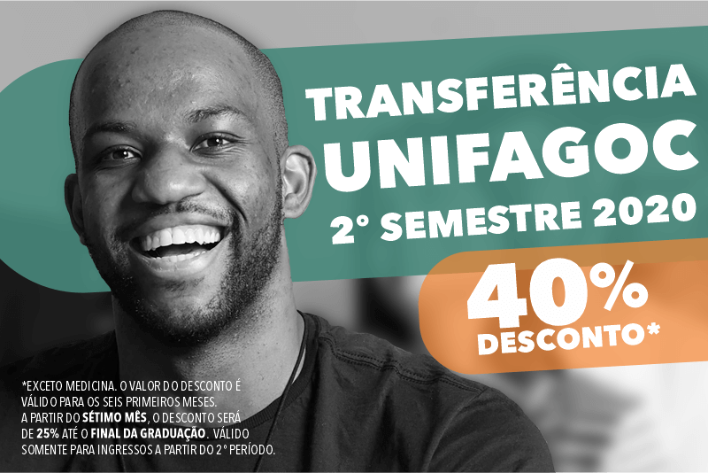 O desconto para alunos de outras instituições que desejam se transferir para o UNIFAGOC agora é de 40% no valor das mensalidades nos seis primeiros meses. A partir do sétimo mês, o desconto é será de 25% até o final da graduação. O desconto é válido para alunos que tenham cursado no mínimo um semestre completo em outra instituição.
