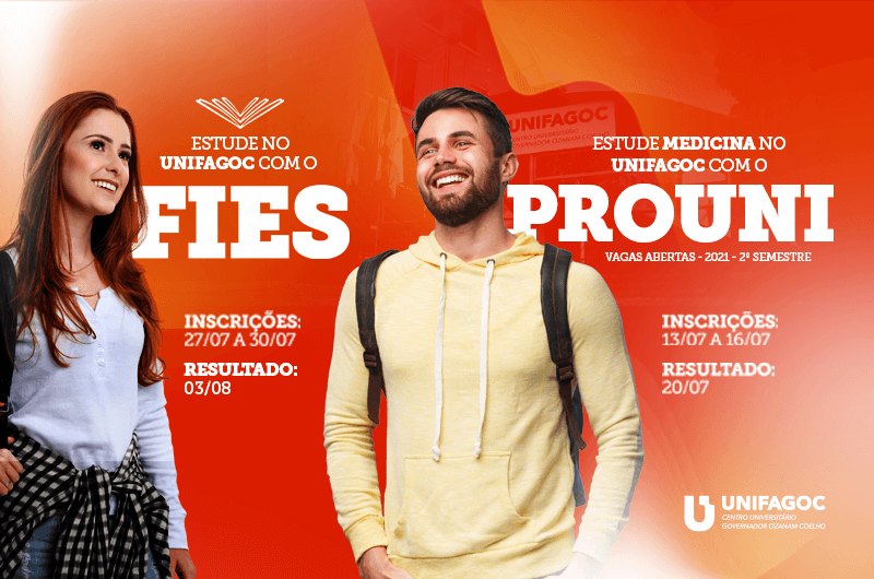 O UNIFAGOC irá disponibilizar bolsas para os programas Universidade para Todos (PROUNI) e Fundo de Financiamento Estudantil (FIES), no segundo semestre. As iniciativas do Governo Federal oferecem bolsas de estudos integrais ou parciais para os alunos em faculdades particulares.