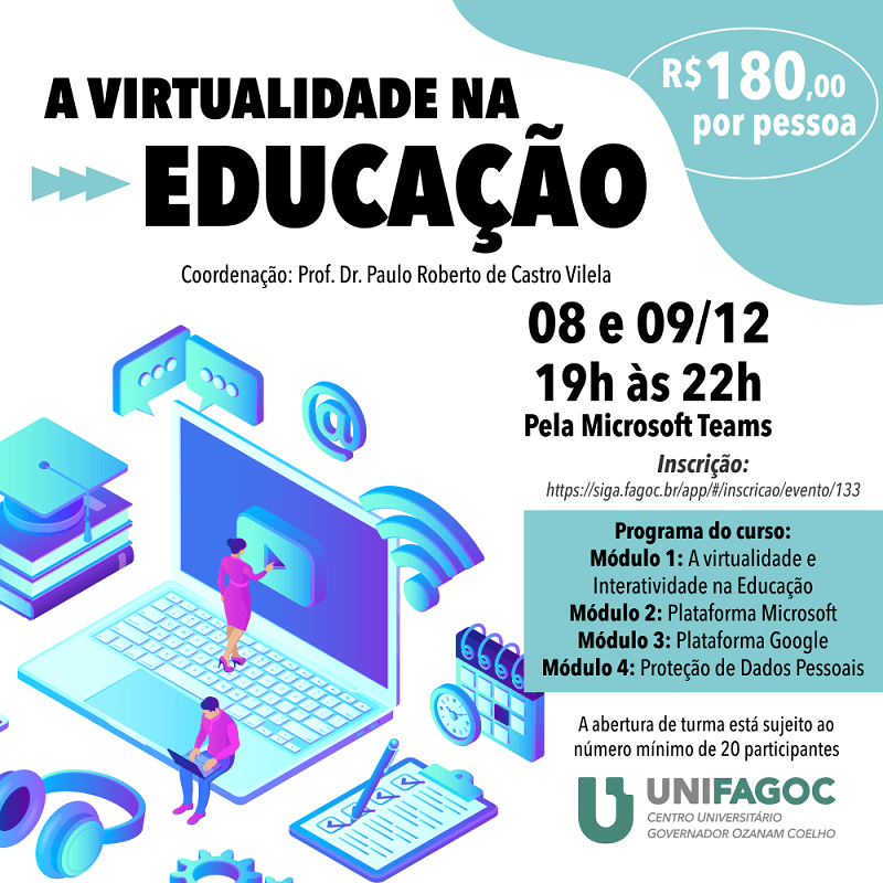 O Centro Universitário UNIFAGOC, em parceria com a INDICCA.COM, empresa responsável pela Microsoft na microrregião de Ubá, oferece o curso A Virtualidade na Educação.