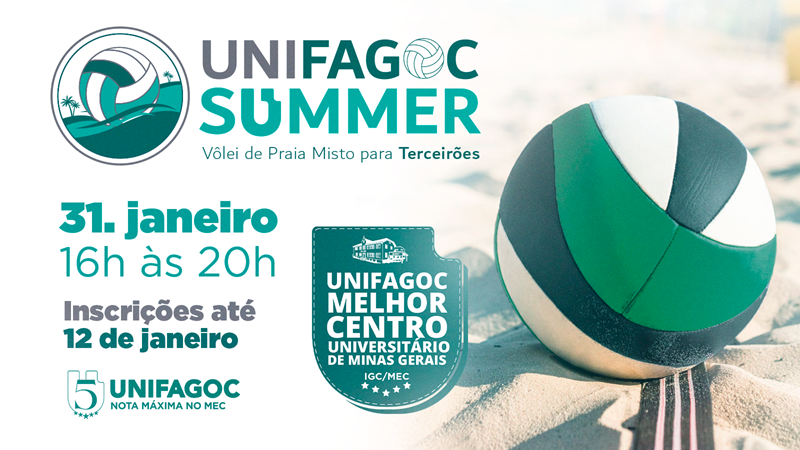 O UNIFAGOC realizará no dia 31 de janeiro, das 16h às 20h, a 1ª edição do UNIFAGOC Summer, um torneio de vôlei de praia misto voltado para estudantes que concluíram o terceiro ano do Ensino Médio em 2025 ou estarão matriculados nos terceirões de escolas públicas ou privadas em 2026. O evento é gratuito e aberto a todas as escolas de Ubá e região.