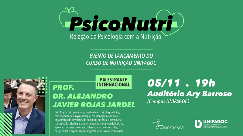 O Centro Universitário UNIFAGOC promove o evento PsicoNutri – A Relação da Psicologia na Nutrição, na próxima terça-feira (05). Na oportunidade será realizado o lançamento do novo curso de Nutrição. A solenidade irá acontecer no Auditório Ary Barroso, às 19h, campus da instituição.