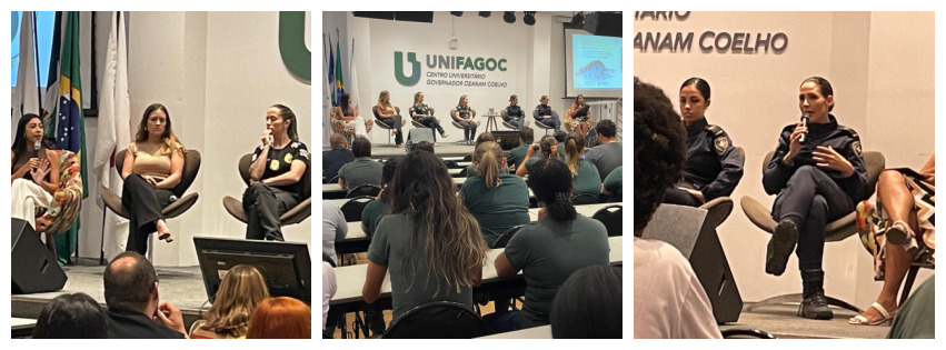 Na última segunda-feira, 10 de março, o UNIFAGOC promoveu uma palestra para seus colaboradores sobre violência contra a mulher, reforçando a importância do debate e da conscientização sobre o tema. O evento, realizado em referência ao Dia Internacional da Mulher, ocorreu no auditório Ary Barroso e contou com uma mesa-redonda mediada pela diretora do curso de Direito, Clarissa Machado.