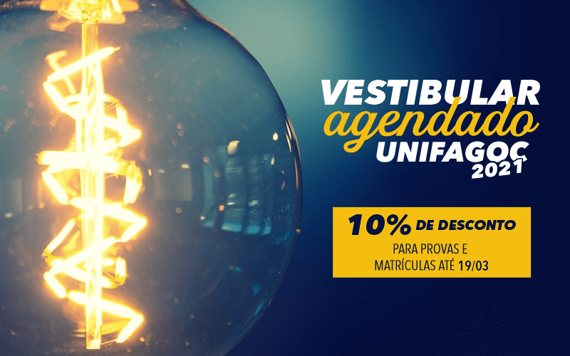 O UNIFAGOC prorrogou o prazo do desconto de 10% na matrícula até o dia 19 de março. Além disso, os candidatos que se matricularem em uma das 11 opções de cursos oferecidas neste Vestibular Agendado poderão parcelar a matrícula em até cinco vezes.