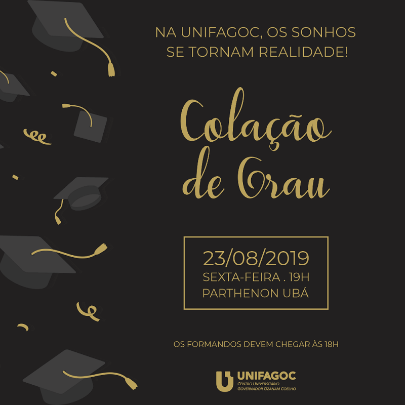 Os formandos devem chegar às 18h para a cerimônia que será realizada a partir das 19h, no Salão de Eventos do Parthenon Ubá. O evento reúne a comunidade acadêmica, além de amigos e familiares dos alunos.