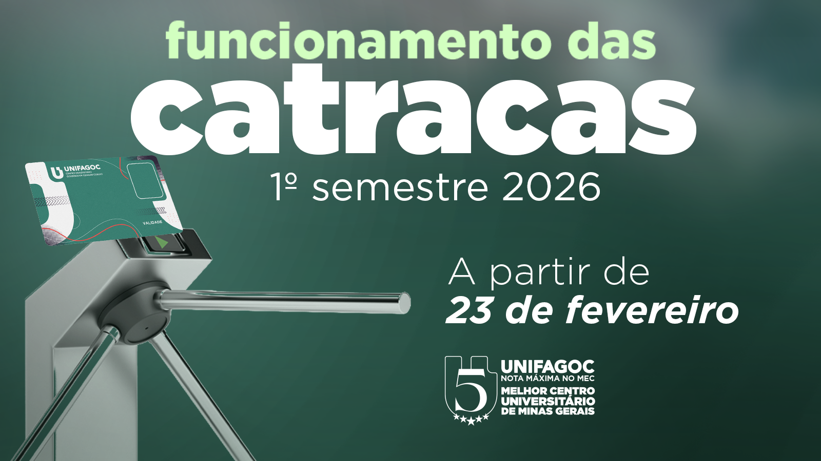 A partir do dia 23 de fevereiro, o UNIFAGOC retoma o funcionamento regular das catracas de acesso ao campus. Para ingressar na instituição, será obrigatória a apresentação da carteirinha estudantil, podendo o estudante optar também pelo acesso por meio do sistema de reconhecimento facial disponível nas catracas.