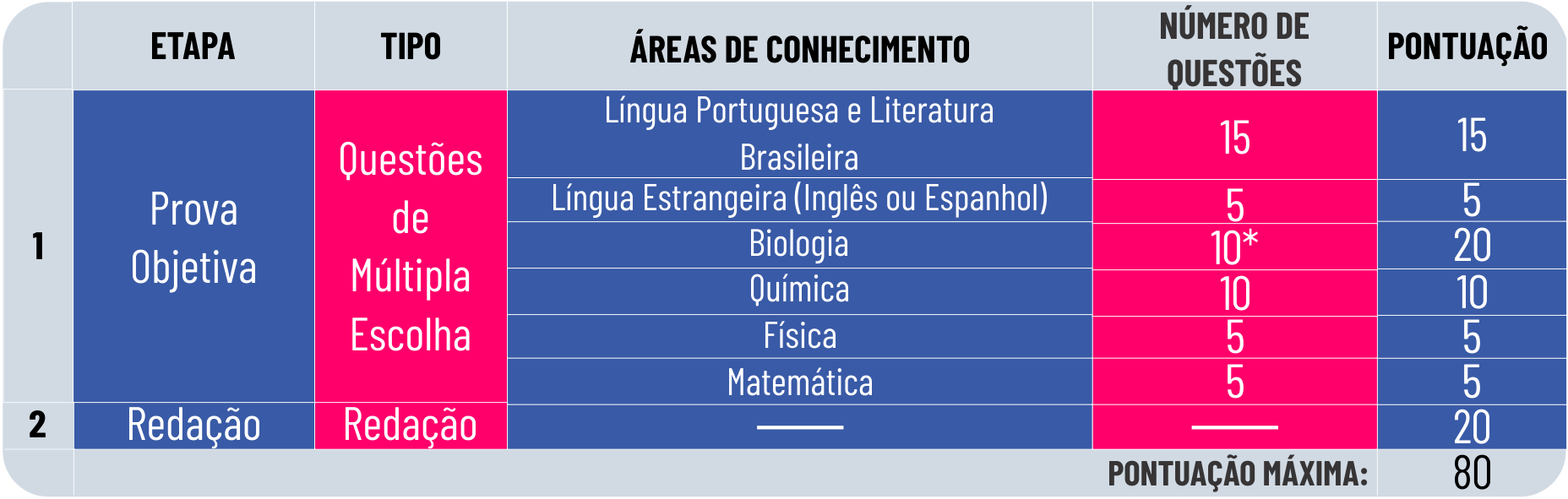 As provas serão constituídas de Redação e Prova Objetiva com questões de múltipla escolha, conforme discriminado no quadro a seguir: