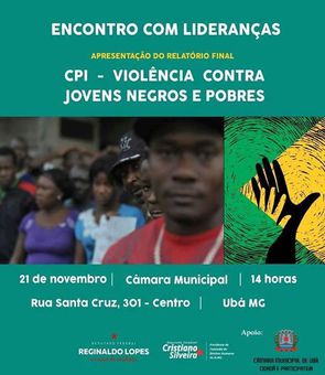 Neste sábado (21), às 14h, na Câmara Municipal de Ubá, acontece a apresentação do relatório final da Comissão Parlamentar de Inquérito (CPI) que tem por principal objetivo investigar a violência contra jovens negros e pobres.